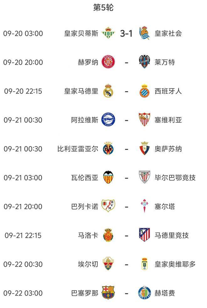 焦点战先行,战火明日再燃:西甲联赛第五轮前瞻